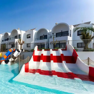 Deze gepersonaliseerde kleurrijke waterslippen uit glasvezel voor hotels en zwembaden hebben een uniek 2D-ontwerp dat past bij de esthetiek van uw locatie, perfect voor zowel commerciële als woonruimten.